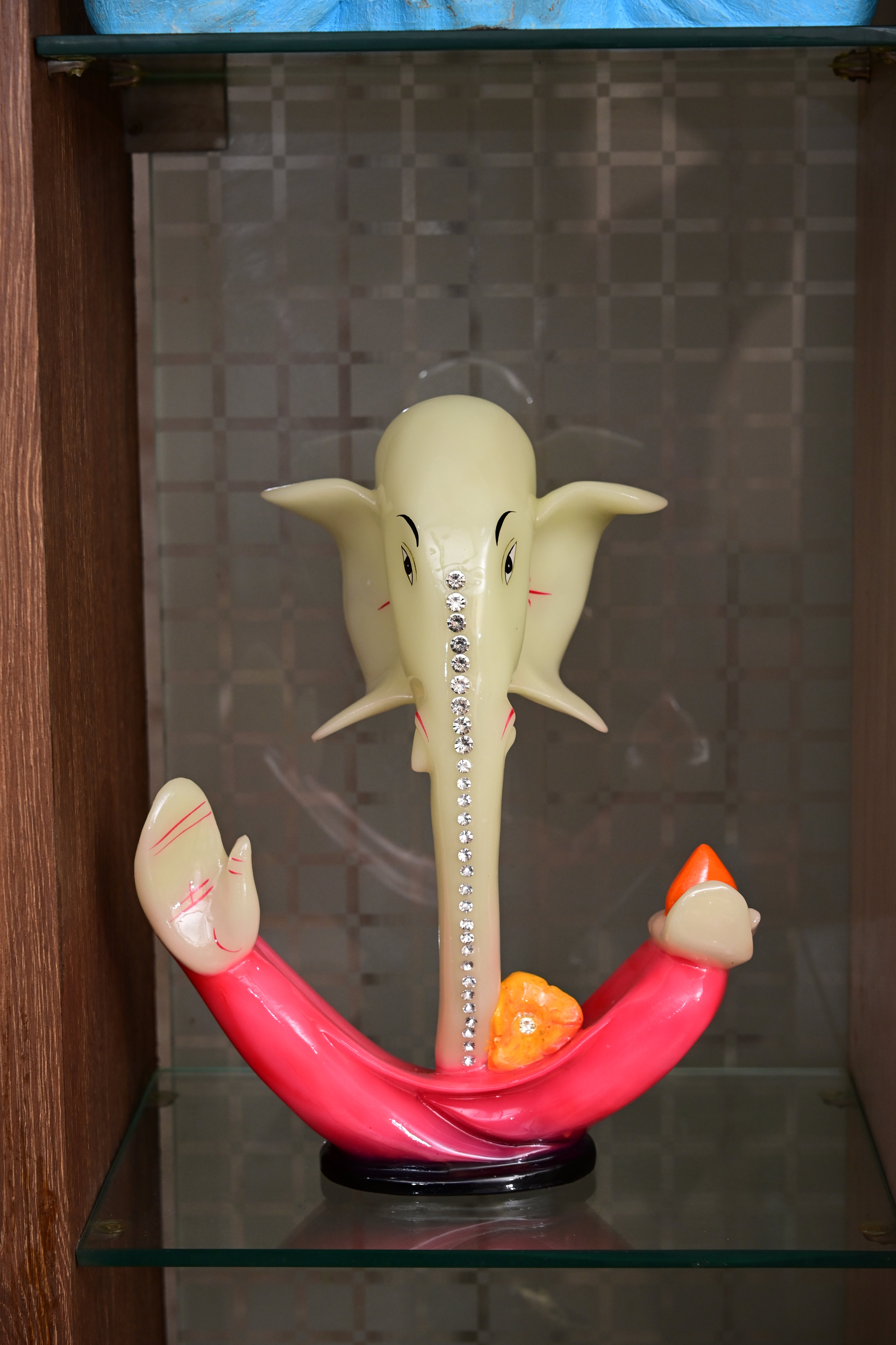 Abstract Blue Ganesha | 40cm Modern Resin Sculpture with Golden Accents