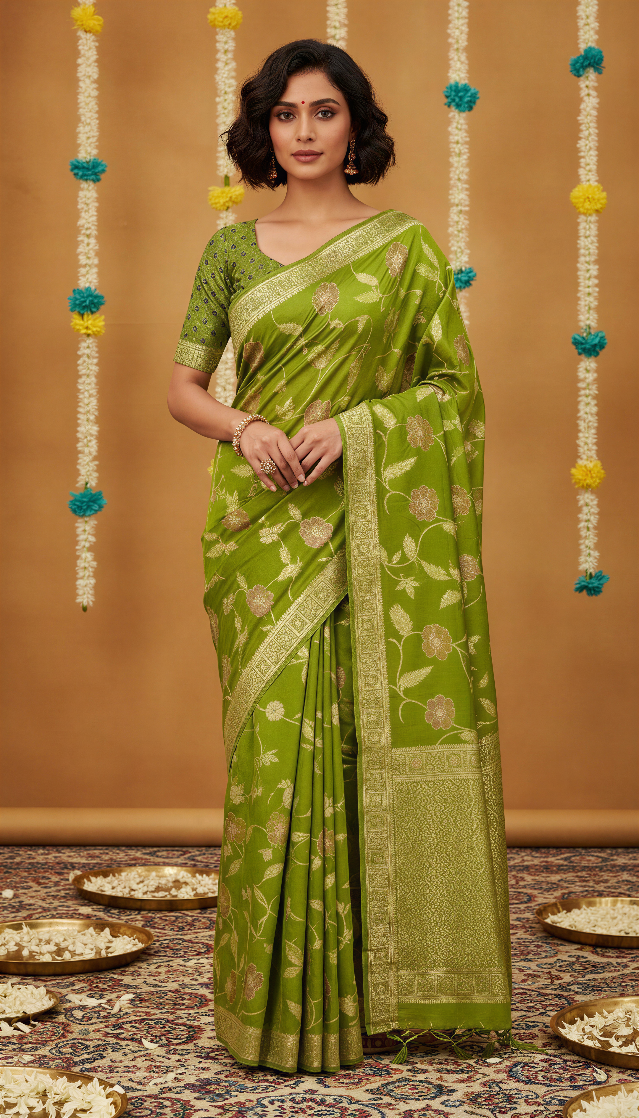 Green & Pink Lichi Silk Jacquard Saree with Rich Pallu