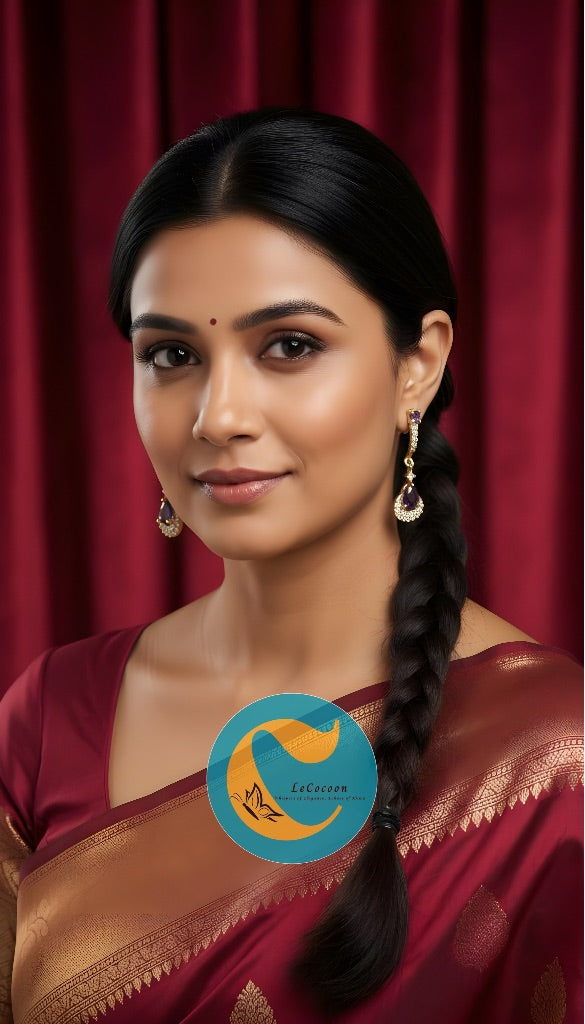 Delicate purple teardrop danglers highlighted with CZ diamonds and a rectangular purple stone at the top. Lightweight and graceful, these earrings are perfect for evening parties, formal occasions, and daily ethnic styling.