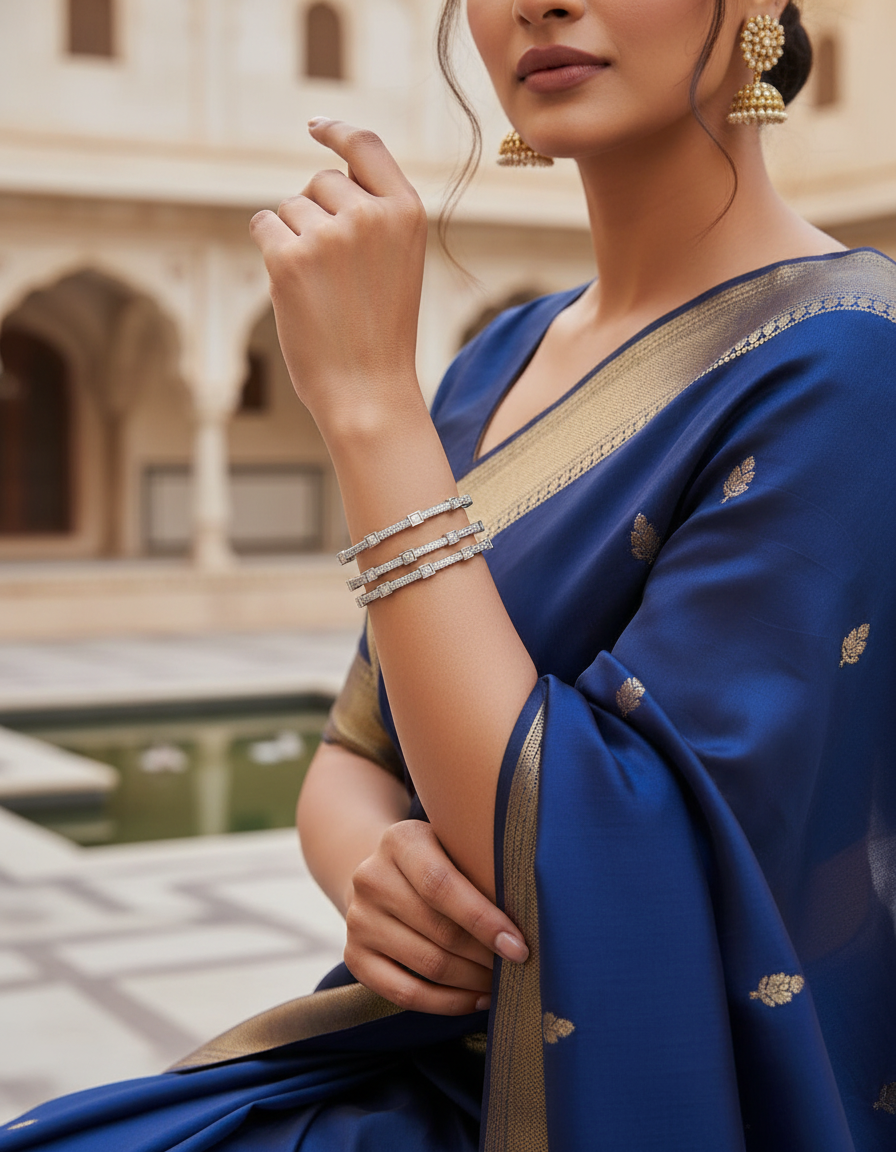 Crafted in 925 certified sterling silver, this lightweight yet durable set offers exceptional comfort while maintaining a bold, structured silhouette. Perfect for festive styling, office elegance, or evening occasions, these bangles are designed for women who appreciate sophistication in simplicity.