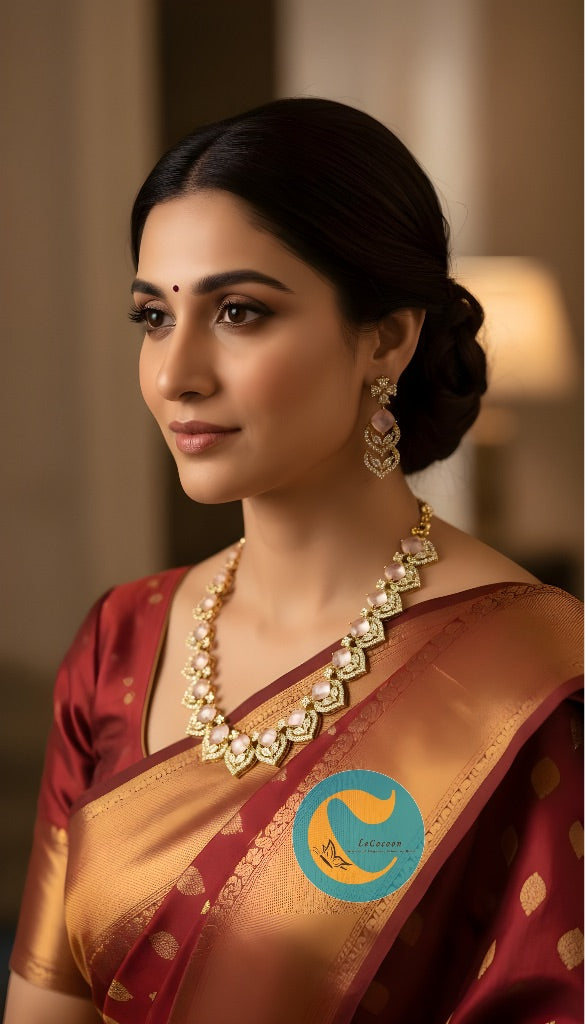 Chic and feminine, this Baby Pink American Diamond Necklace Set is perfect for those who love subtle elegance.