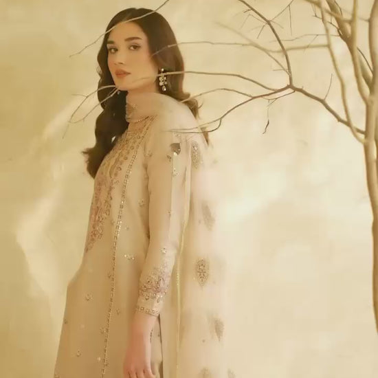 ÉLAN Noor-E-Beige Embroidered Kurta Set with Dupatta