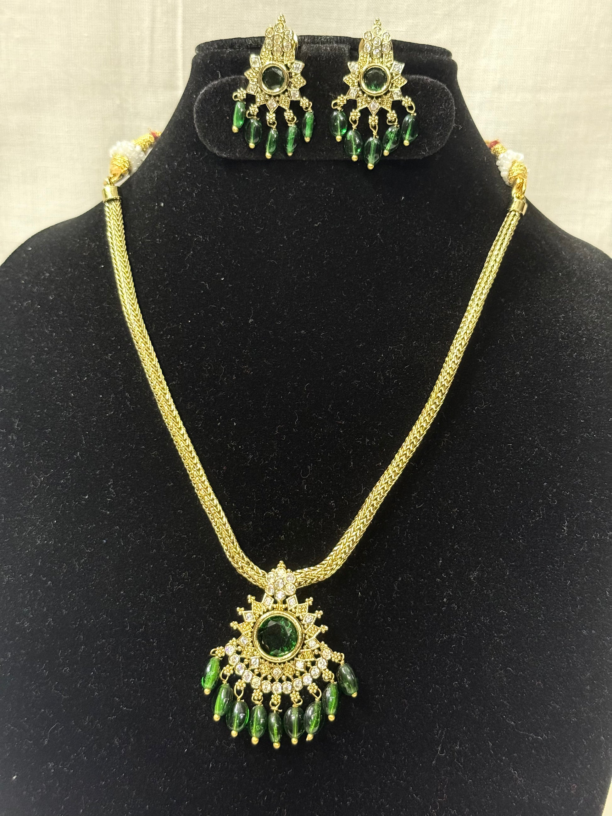 Emerald Green Temple Style Necklace Set with Earrings