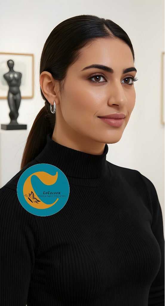 For a fashion-forward look, combine these hoops with delicate diamond studs on your upper piercings. Add a minimalist silver bracelet or layered chains for that Le Cocoon modern touch.