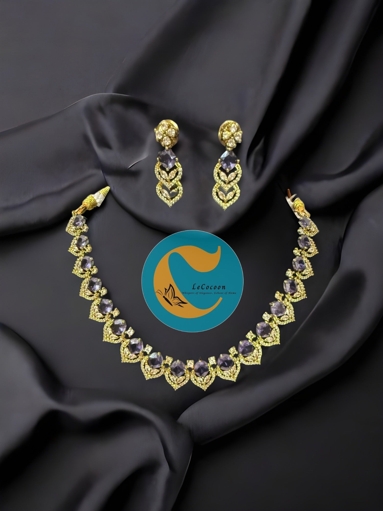 Elegant and classy, this Lavender Purple American Diamond Necklace Set is a must-have for special occasions.