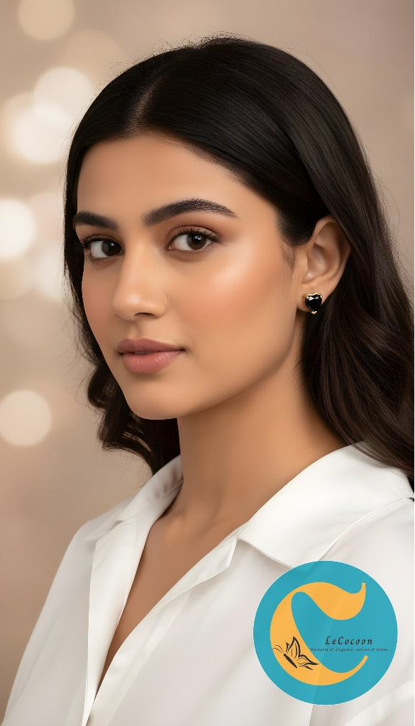 Bold yet timeless, the Midnight Heart Black Stone Stud Earrings bring together elegance and mystery in a compact, stunning design. Featuring heart-cut black gemstones set in a premium brass frame with fine gold plating, these studs exude modern sophistication. The deep onyx hue symbolizes power, grace, and inner strength — perfect for those who prefer a touch of statement minimalism. Designed to be lightweight and comfortable, these earrings are an ideal pick for both daily wear and special occasions that call for a subtle yet striking look.