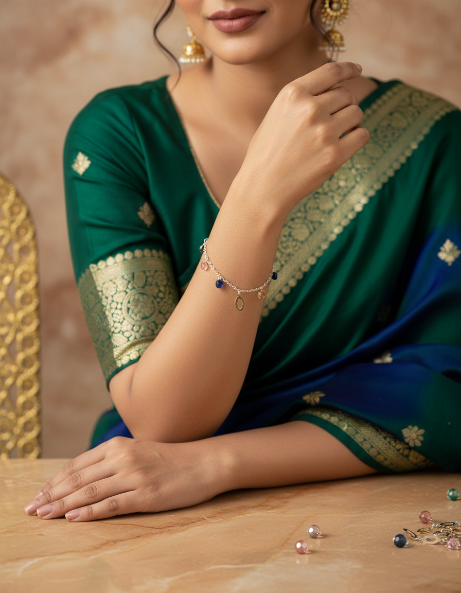 A lightweight 925 sterling silver bracelet featuring delicate charms and crystal accents, designed for everyday elegance with a premium finish.
